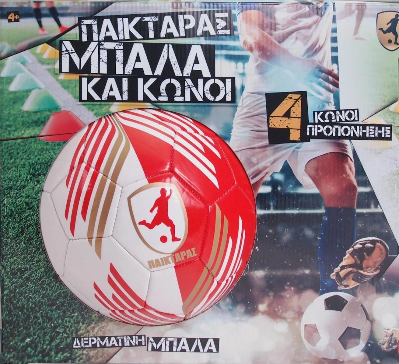 Παικταράς κόκκινος μπάλα και 4 κώνοι Με τα χρώματα της αγαπημένης σου ομάδας! Με 4 κώνους προπόνησης και δερμάτινη μπάλα.