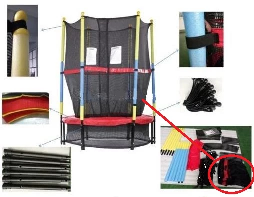 Δίχτυ Ασφαλείας για τραμπολίνο TX-B7105D! Διαμέτρος:1.37m (54′) Ύψος 1.46m με 6 θήκες για στύλους σε μαύρο χρώμα. Διαθέτει κόκκινη διακοσμητική λωρίδα και αυτοκόλλητο χρατς. Στο τελείωμα υπάρχουν πλαστικά κλιπ-άγκιστρα για εύκολη σύνδεση με το τραμπολίνο.