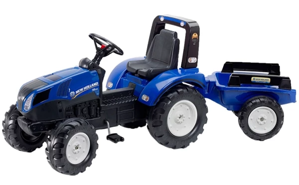 Falk 3090B New Holland T8 Τρακτερ+Καρότσα Μπλε (3-7 Ετών) Διαθέτει τιμόνι με κόρνα Κατασκευασμένο στη Γαλλία Διαστάσεις: Μ:162x Π:54x Υ:66 εκ. Μέγιστο βάρος: 50 κιλά