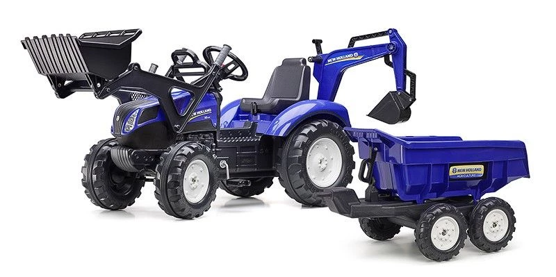 Falk Τρακτέρ 3090W New Holland με Διπλό Εκσκαφέα Μπλε και Καρότσα