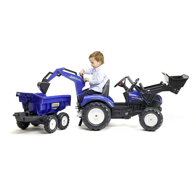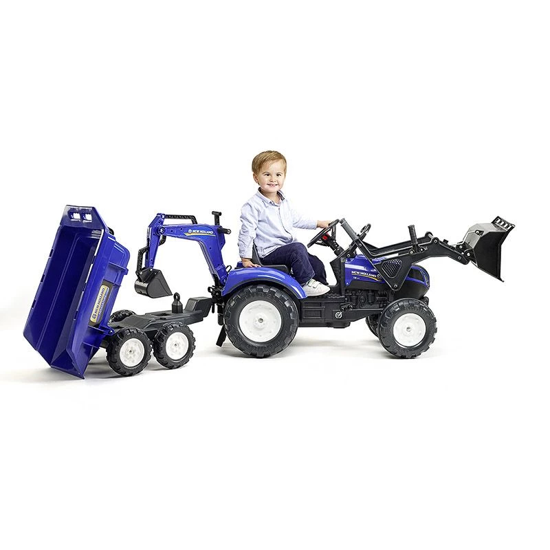 Κάτι παραπάνω από μια εκσκαφέα! Αυτό το 100% κατασκευασμένο στη Γαλλία ακριβές αντίγραφο του μοντέλου New Holland T8 είναι μια τέλεια πλατφόρμα παιχνιδιού για μικρούς λάτρεις της περιπέτειας από 3 έως 7 ετών. Από την περιστρεφόμενη καμπίνα 360° το παιδί σας μπορεί εύκολα να φτάσει όχι μόνο στο τιμόνι με την κόρνα, αλλά και στον μπροστινό φορτωτή και τον πίσω εκσκαφέα. Είναι εξοπλισμένο με ένα maxi ανατρεπόμενο τρέιλερ που προσφέρει απεριόριστες ευκαιρίες παιχνιδιού. Το σκάψιμο και η μεταφορά δεν ήταν ποτέ τόσο διασκεδαστικό!