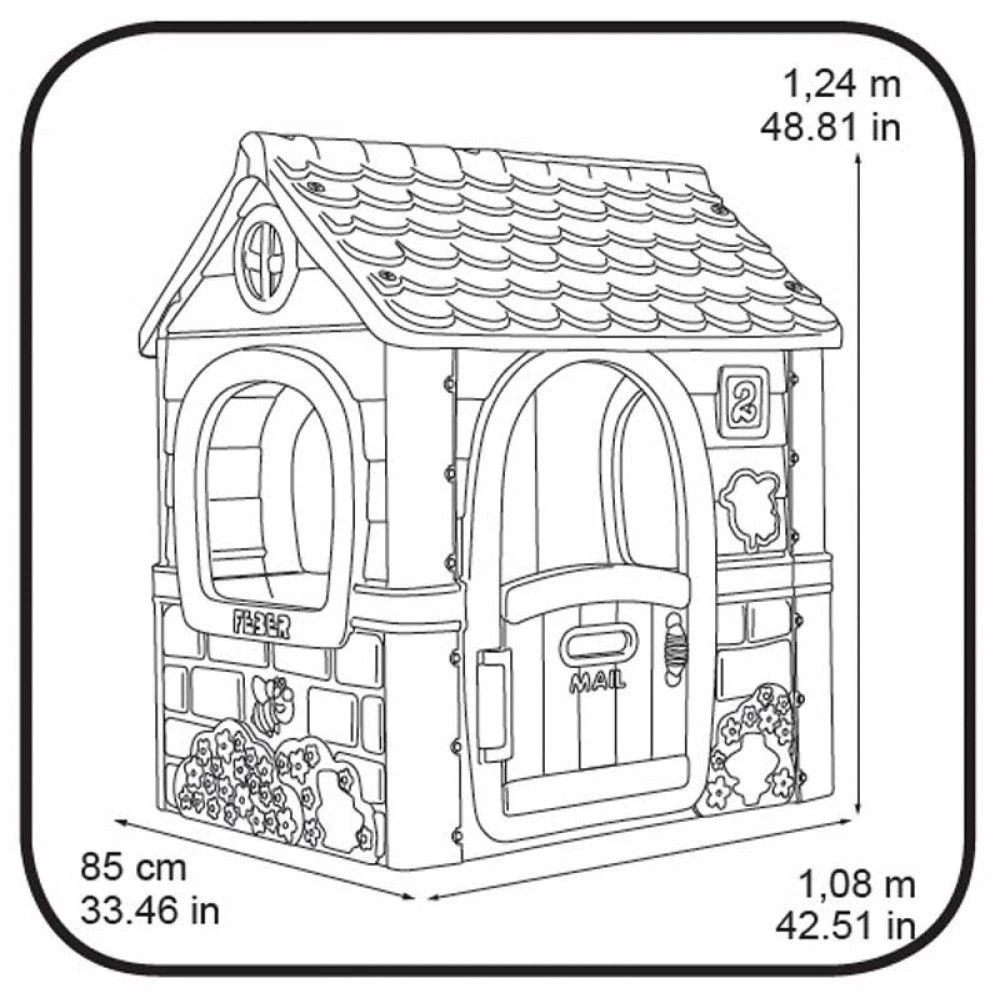 Πολύχρωμο Pretty Garden House, εξοπλισμένο με πόρτα και γραμματοκιβώτιο και 3 παράθυρα.
