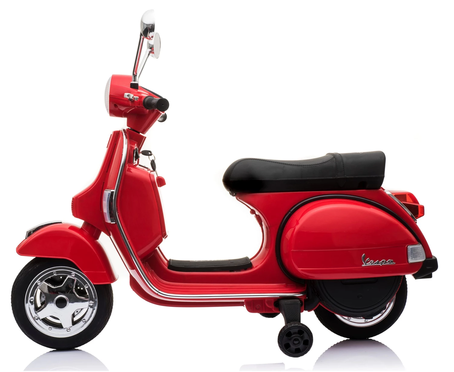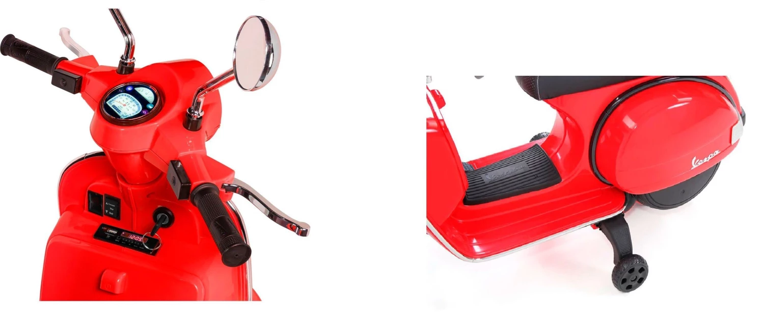 Vespa Licenced 6V 4.5AH Red Color Μοτέρ: 1 x 6 Volt Μπαταρία: 1x6Volt/ 4,5 Ah Μουσική: Ναι Φώτα: Ναι (LED) Ταχύτητα: 3-5 km/h Μέγιστο Βάρος: 25 kg Λειτουργία Mp3: Ναι Διαστάσεις: 107x51x82 εκ.