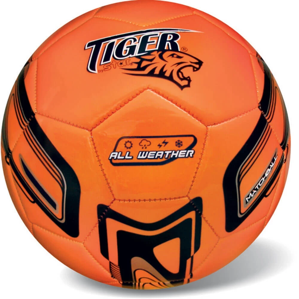 Μπάλα Ποδοσφαίρου, Tiger σε φλούο πορτοκαλί χρώμα, 21 εκατοστών. H “Star” μεταφέρει όλη την εμπειρία της στο δημιουργικό κομμάτι και παρουσιάζει μοναδικά αθλητικά σχέδια. •Υλικό: Συνθετική Δερμάτινη •Πάχος: 3χιλ. •Βάρος: περίπου 400γρ. Διάμετρος: 21-22 εκ.
