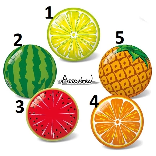 Μπάλα Star Juice Fruits (Καρπούζι-Λεμόνι-Ανανάς-Πορτοκάλι) Μπάλα Πλαστική *διατίθεται σε 5 σχέδιαΤο προϊόν διατίθεται σε διάφορα σχέδια ή χρώματα. Η επιλογή γίνεται τυχαία. ΠΩΛΟΥΝΤΑΙ ΞΕΧΩΡΙΣΤΑ
