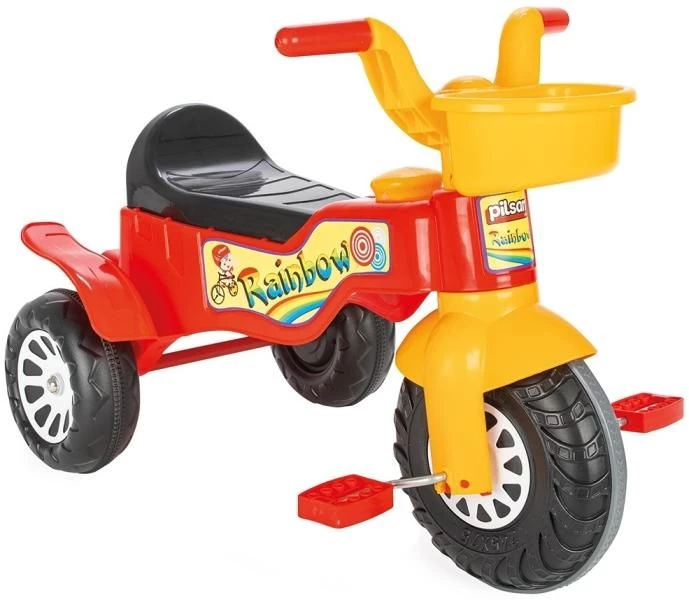 Ποδηλατάκι τρίκυκλο Pilsan Rainbow Ποδοκίνητο παιδικό ποδηλατάκι τρίκυκλο Διαθέτει κόρνα και καλαθάκι. *Μέγιστο βάρος 35 κιλά Μ:75x Π:40x Υ:51 εκ. *Τα αυτοκόλλητα ενδέχεται να διαφέρουν από αυτά της φωτογραφίας.