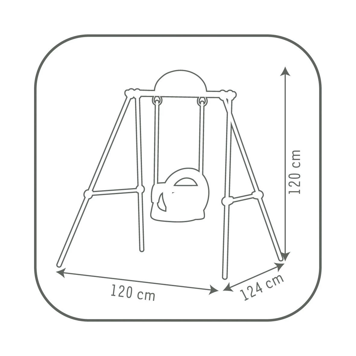 SMOBY Παιδική κούνια μεταλλική μονή. Μεταλλική παιδική κούνια ύψους 120 εκ., για μωρά απο 6 μηνών! Με σταθερό και ανθεκτικό πλαίσιο, κατάλληλη για εσωτερική και εξωτερική χρήση! UV προστασία, κατά του ξεθωριάσματος. -Μέγιστο βάρος 25 κιλά. Διαστάσεις: 120x124x120cm