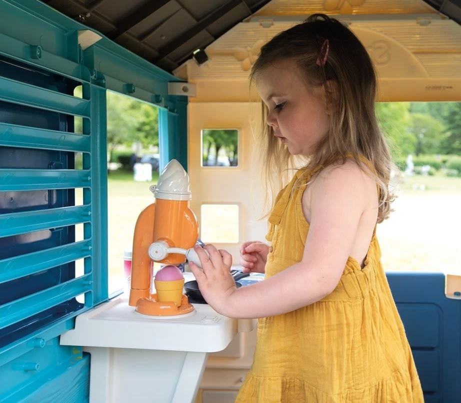 Εξοπλισμένο με μισή πόρτα, 2 παράθυρα με περσίδες και συρόμενο παντζούρι, το παιδότοπο δίνει τη δυνατότητα στα παιδιά να ετοιμάσουν κάτι γλυκό!